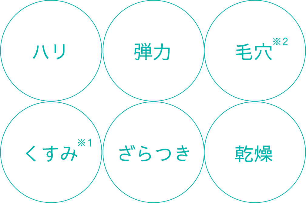 ※1 自社従来品比 ※2 炭酸ガス(噴射剤) ※3 リン酸アスコルビルMg(整肌)、ビスグリセリルアスコルビン酸(整肌)、テトラへキシルデカン酸アスコルビル(整肌) ※4 水添レチノール(整肌) ※5 セラミドNP(保湿)、セラミドNG(保湿)、セラミドAP(保湿)